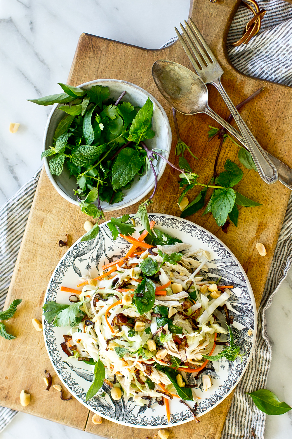 I am so so thrilled to share this recipe for Vietnamese Chicken Salad (Goi Ga Bap Cai) with you all! This salad is one of those staples at most Vietnamese restaurants, and is usually served as an appetizer, family style, but I’ve been known to order it for myself as an entree.